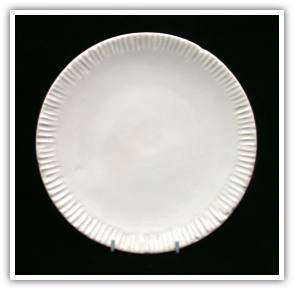 Bord met kantrand in glanzend wit glazuur. De rand wordt met de hand aangebracht waardoor elk bord uniek is.